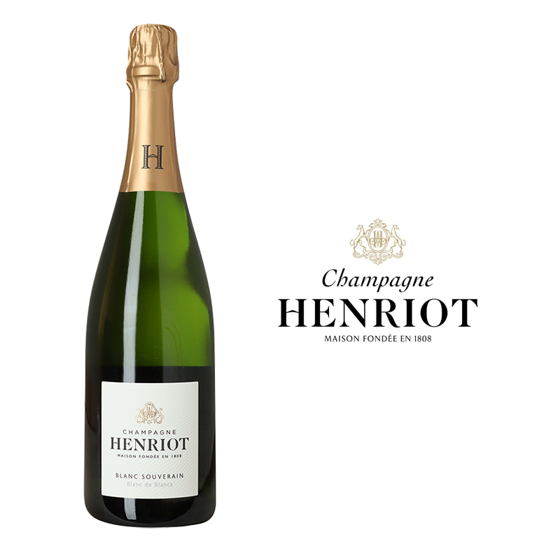 Servér Champagne Henriot Blanc de Blancs til blinis-rullerne: Blanc de Blancs er lavet på 100% Chardonnay, som primært kommer fra Côte des Blancs samt forskellige villages crus. Vinen laves med op til 30% reservevin og ligger på flaske i 3-5 år, inden den frigives. En intens vin med fine, delikate bobler og aromaer af citrus, mandler, kvæde og ristet brioche.