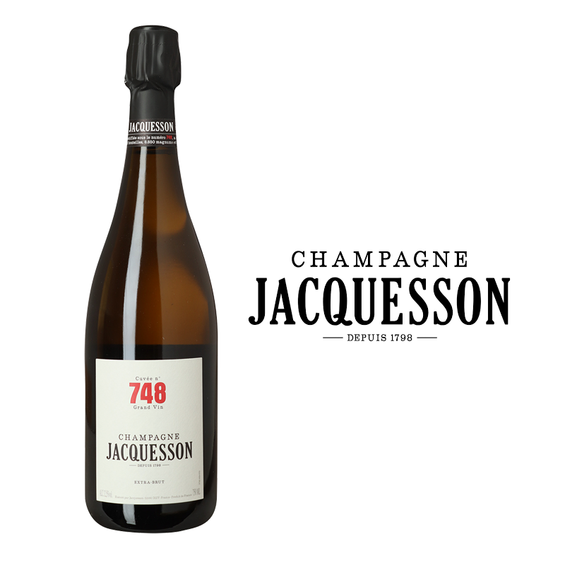 Servér NV Champagne Jacquesson 748, Extra Brut til blinis med kaviar: Cuvée 748 er baseret på 2020s høst. 55% af druerne kommer fra Aÿ, Dizy, Hautvillers og Champillon, og 45% kommer fra Avize og Oiry. Cuvéen indeholder ligeledes réservevin af ældre årgange, og den har ligget mere end 3 år på gæren før degorgering. Dosage: 2 gr/l. Flot struktureret vin, afbalanceret, lang og kompleks. Vin af meget høj klasse der byder på finesse og renhed med citrus og brioche i smagen og en lang frisk, mineralsk og levende afslutning.