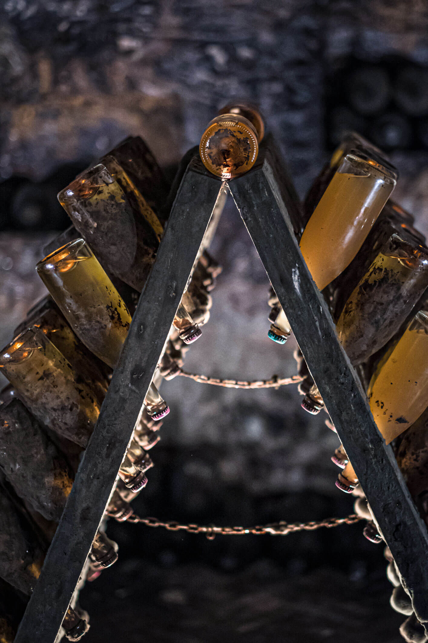Flasken forsegles med kapsel og placeres i kølig kælder for at gære langsomt og for at producere alkohol og kuldioxid. I kælderen roteres flaskerne jævnligt for at udvikle sig.