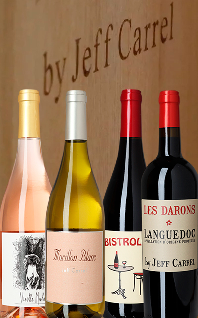 Jeff Carrel er kendt for at lave originale vine med unikke etiketter til overkommelige priser. Vinene har deres eget univers med deres egen historie og en stærk identitet. Det er lettilgængelige vine, der er både seriøse og uhøjtidelige på samme tid.