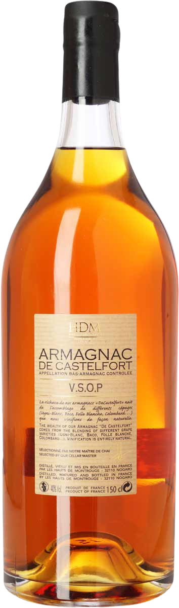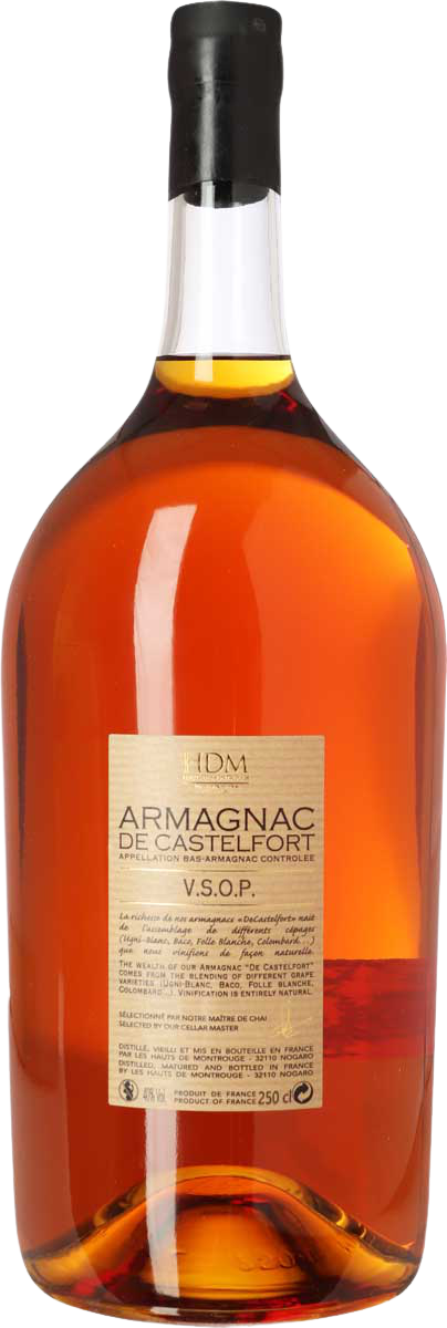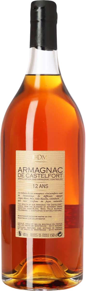 Castelfort er fra et gammelt kooperativ i Nogaro, som laver både armagnac og bordvine. Der er 60 dyrkere med 900 ha. marker tilsluttet. Deres tre alambic’s / destillationsapparater hedder Athos, Porthos og Aramis efter “De Tre Musketerer”, som er en væsentlig del af egnens identitet. Destillatet lagres i egefade fra Gascogne, Vogeserne og Allier skovene; enkelte fade er meget store men langt de fleste er på 400 l. De har et stort lager af meget gammel armagnac med en fin, nuanceret smag. Armagnac er en spændende drik med et væld af smagsnuancer, og meget ældre end cognac, som den ofte nævnes som alternativ til. Mht. druerne er de nærtstående, men fremstillingsprocessen ligner mere maltwhisky, og den fås i meget gamle årgange. I lagret armagnac er ofte duft- og smagsindtryk som kandiseret frugt, orangeskal, karamel, vanilje, nødder, dadel, peber og tørrede svesker.