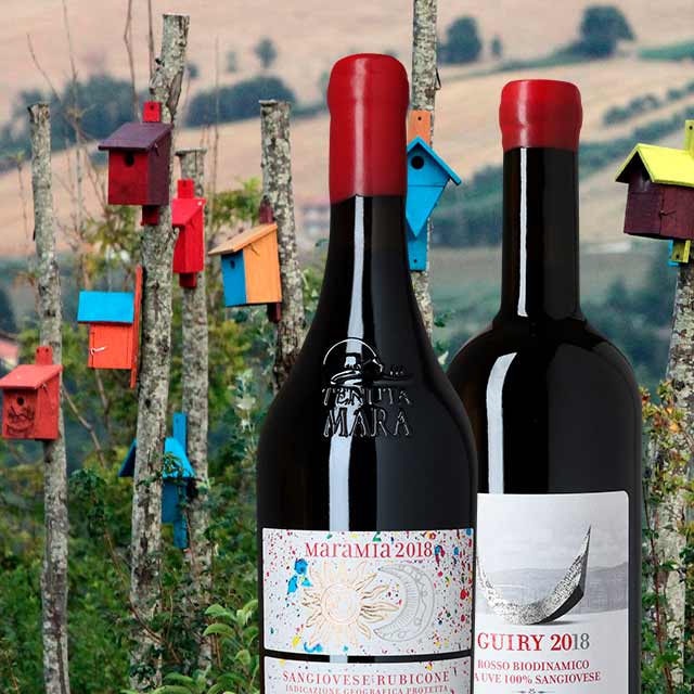 Fra man kommer ind på vingården lægger man mærke til de store kunstværker, som passer harmonisk til stedet. I markerne gror vinen til toner af Mozart; musikkens rytmer er vigtig og regulerer årstiderne og livscyklusen, mener man hos Mara. 7 hektar er plantet med Sangiovese, og det perfekte økosystem inkluderer 700 fuglereder, 50 kasser til flagermuse, 5 ynglesteder til insekter og 3 hestestalde. Erik Sørensen Vin har arbejdet med Tenuta Mara siden 2017.