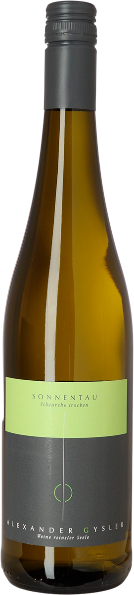 "Sonnentau" (soldug) har druens klassiske grape - lime - stikkelsbær og let urtede karakter. Kan suppleres med hvid peber, æbletone, hvid fersken og en markant, spillende syre: 9,1 g./l. De 8,4 g. restsukker mærkes ikke: absolut "trocken" med kun 11,5% alkohol. Dette er druens oprindelige hjem, da dens "far" Georg Scheu, der skabte den i 1916, boede det meste af sit liv i Alzay, hvor vingården er. Når druerne er modne og håndhøstet, laver vinen nærmest sig selv med spontangæring, lagring på gærresterne i 5 mdr. og tapning uden klaring og filtrering. Udtryksfuld men letbenet. Til apéritif, sushi, fisk i sovs eller grillet tun.